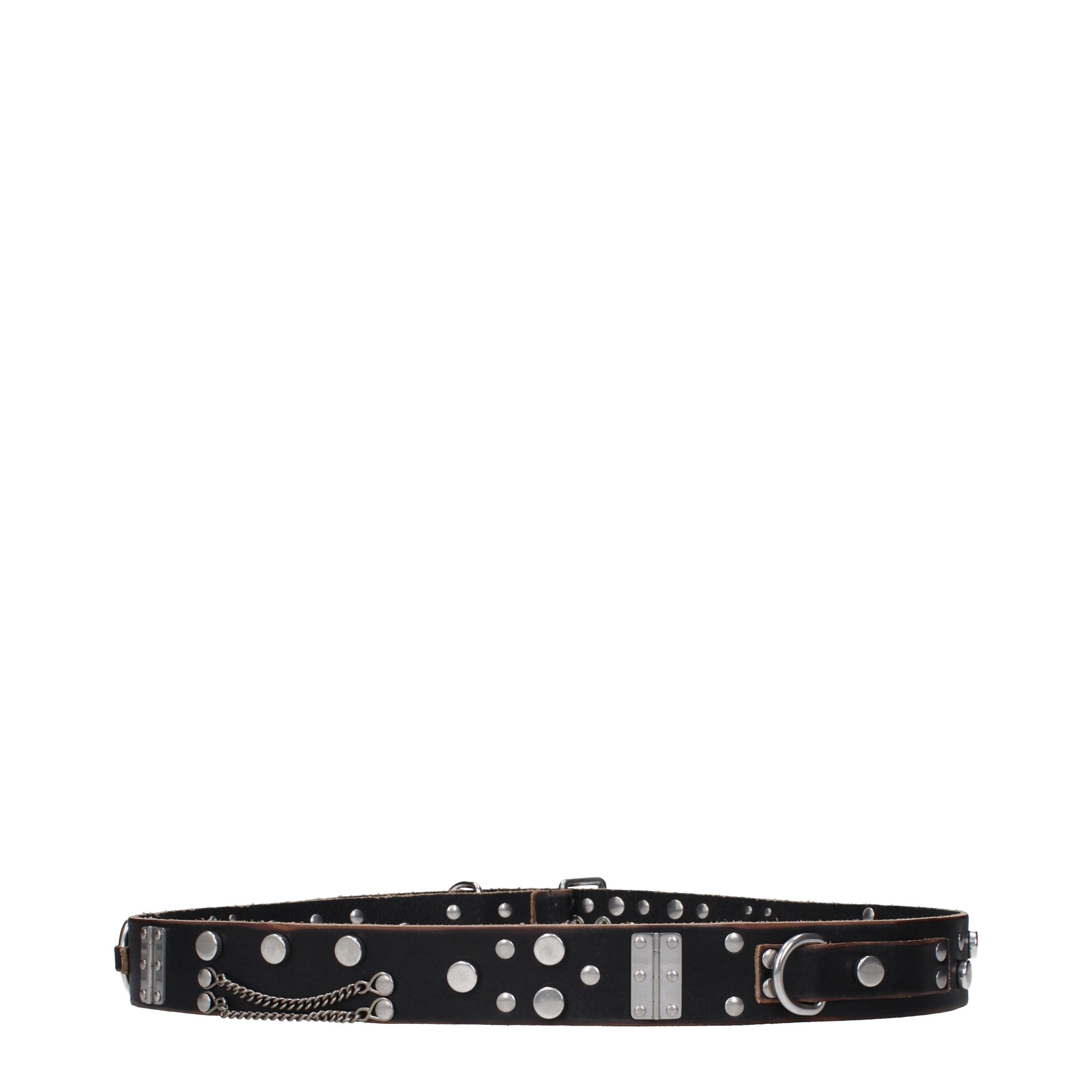 Этот ремень от PRADA демонстрирует сложную визуальную динамику, созданную за счет обилия металлической фурнитуры. Поверхность изделия украшена заклепками, люверсами и кольцами, которые формируют индустриальный облик. Традиционная пряжка обеспечивает надежную фиксацию, подчеркивая функциональную направленность дизайна и внимание к деталям конструкции.