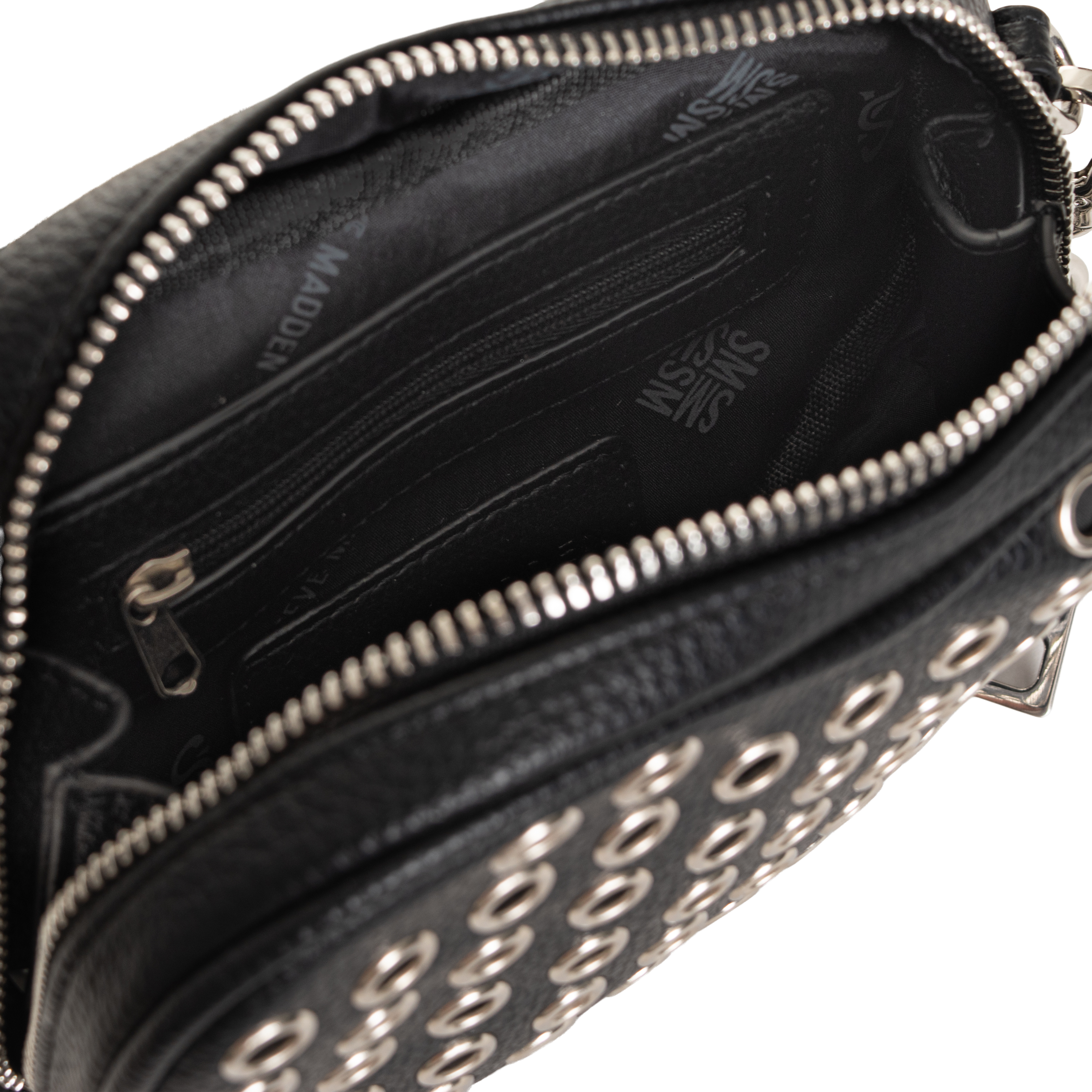 CROSSBODY BAG, FOR WOMEN, ADJUSTABLE SHOULDER STRAP, SOLID COLOUR, WITH LOGO, ZIP CLOSURE, WITH STUDS