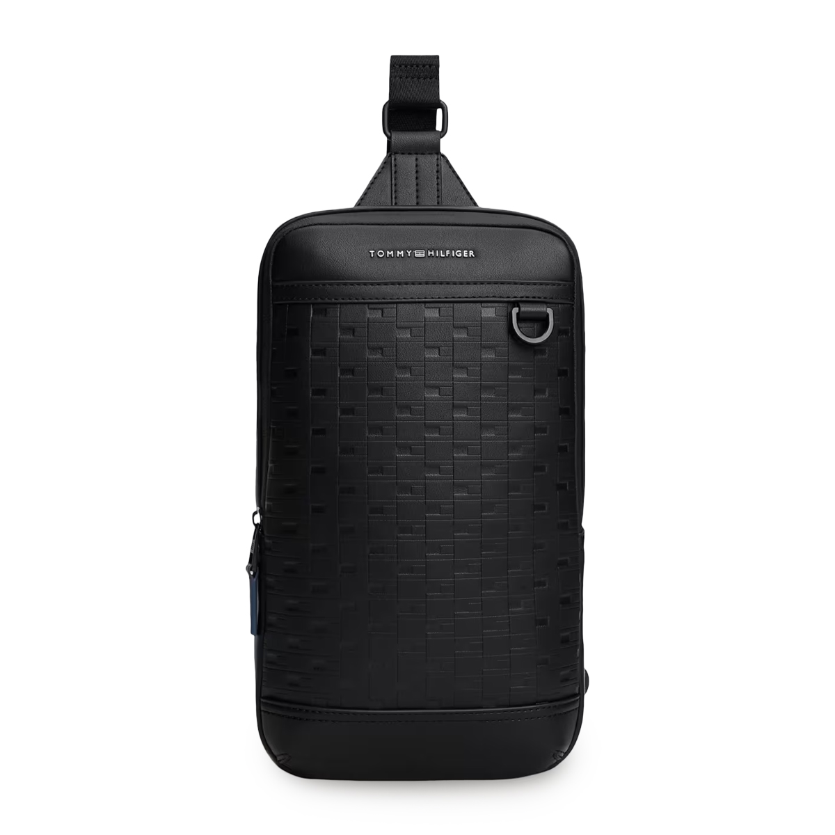 Эта сумка TH MODERN SLINGPACK, BDS от TOMMY HILFIGER представляет собой современный аксессуар через плечо с четким вертикальным силуэтом. Лицевая панель украшена глубоким геометрическим тиснением, создающим строгий и упорядоченный визуальный эффект. Компактный размер и наличие функционального металлического кольца подчеркивают практическую направленность дизайна, сохраняя при этом лаконичность форм.