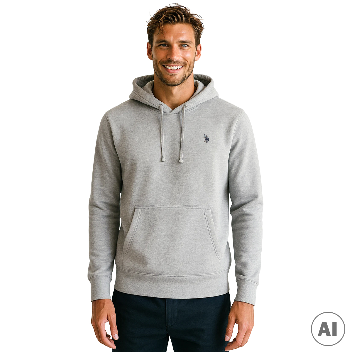 SWEATSHIRT, FOR MEN, LARGE POCKET, DRAWSTRING HOOD, LONG SLEEVES, SOLID COLOUR, FLEECE, WITH LOGO