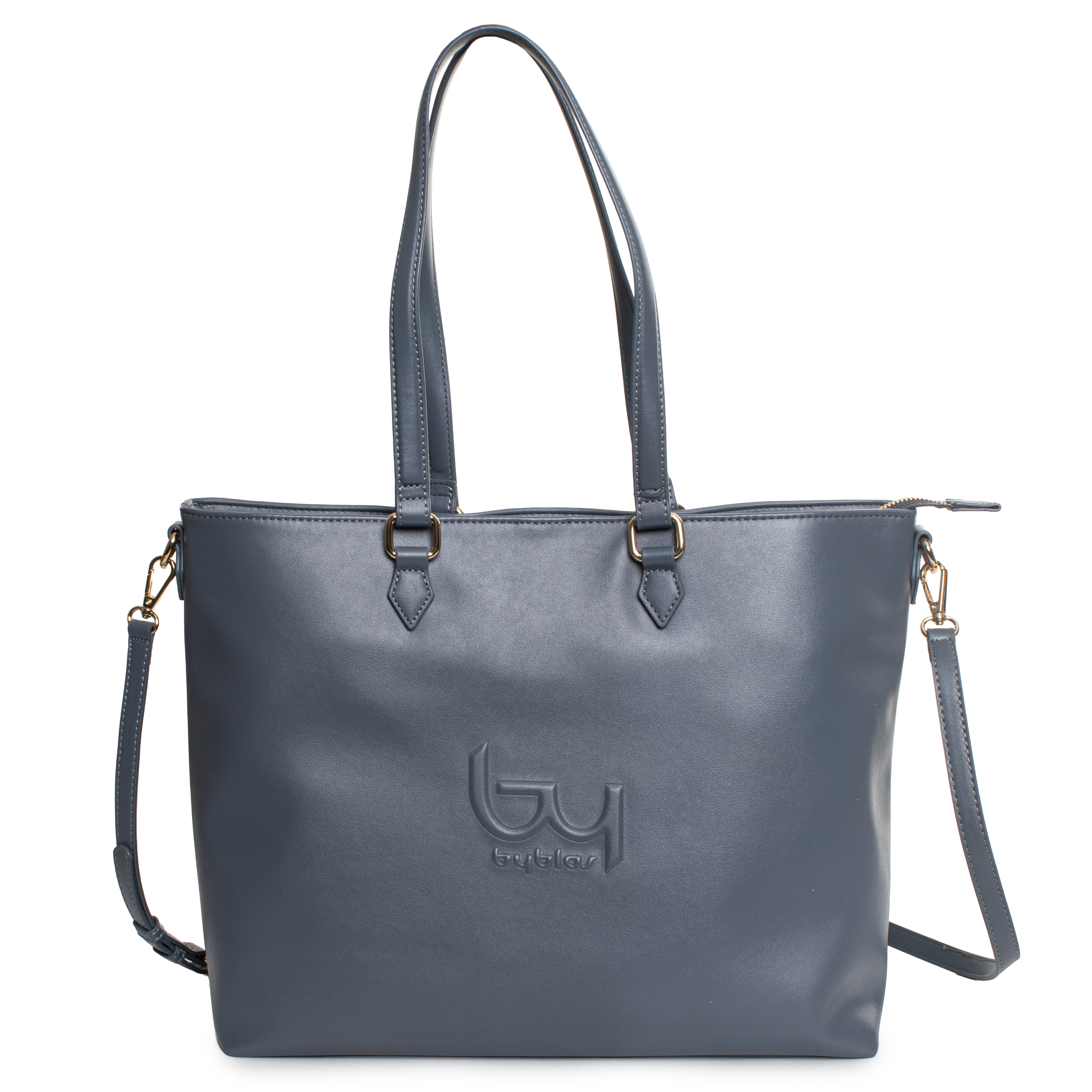 SHOULDER BAG, FOR WOMEN, DOUBLE HANDLE, REMOVABLE SHOULDER STRAP, SOLID COLOUR, WITH LOGO, ZIP CLOSURE