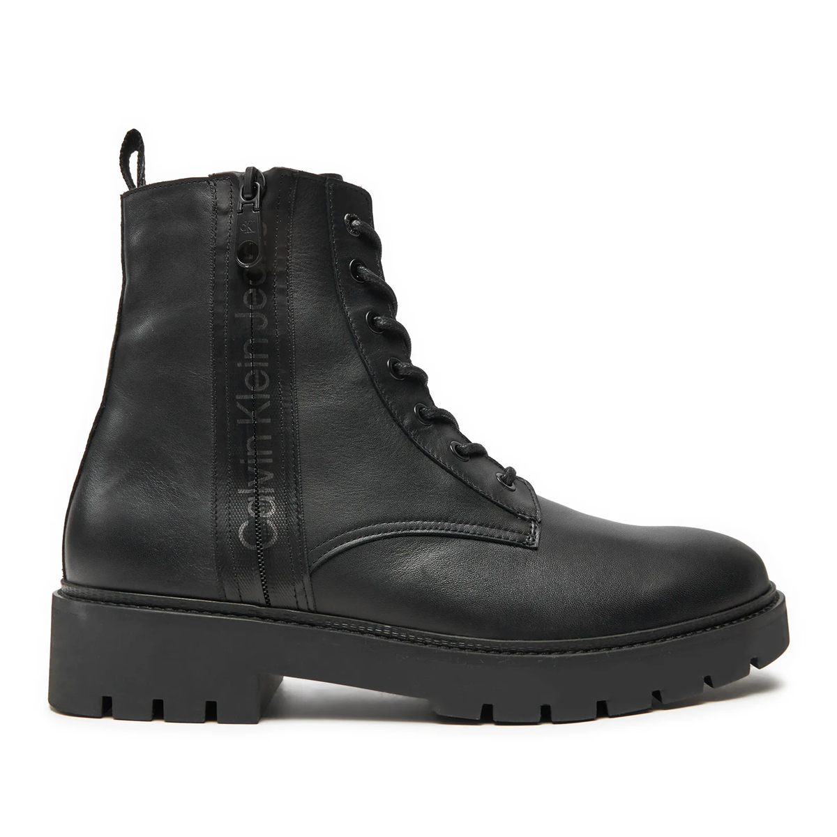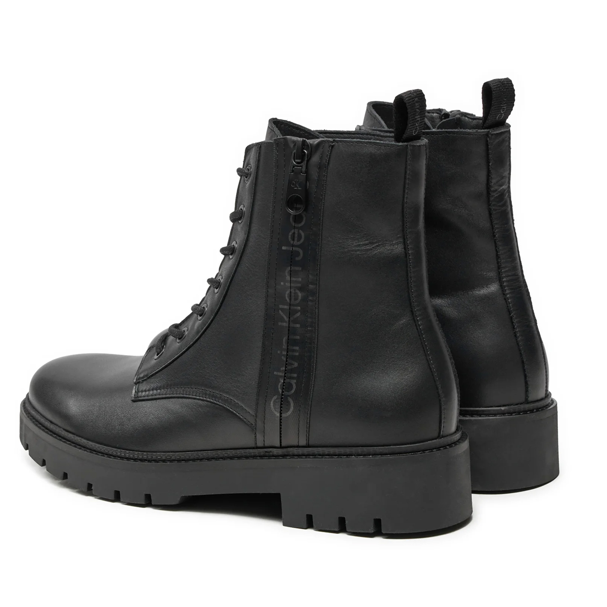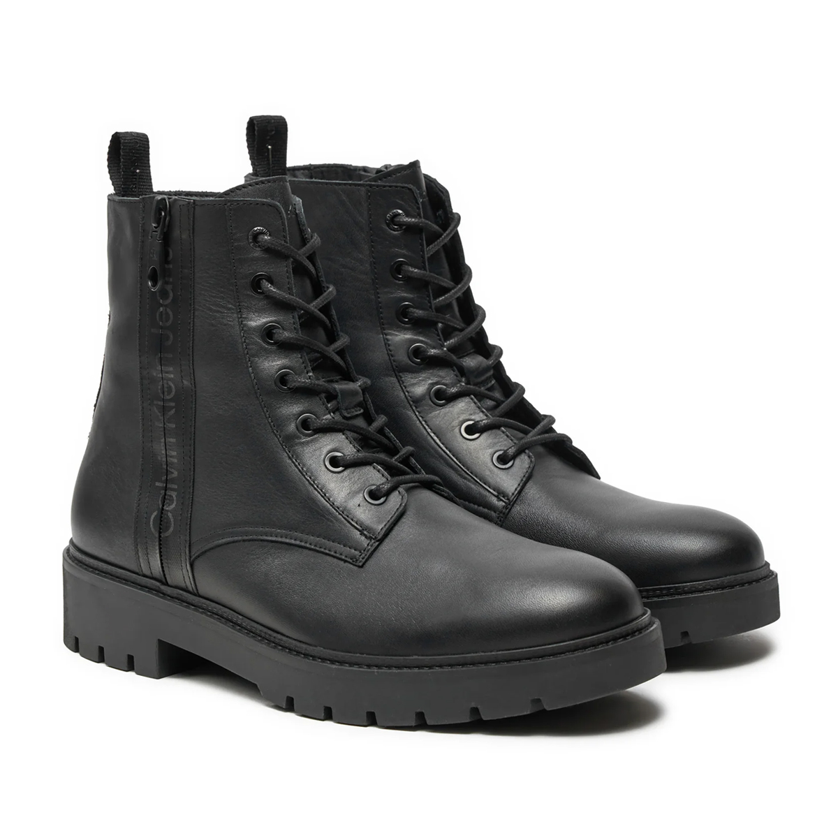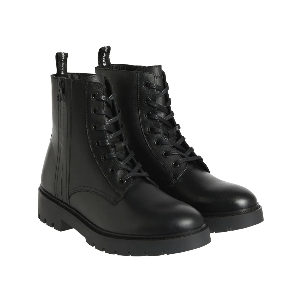 COMBAT BOOTS, FOR MEN, SOLID COLOUR, LEATHER, HEEL HEIGHT CM 4.5, CLOSING WITH LACES, WITH LOGO