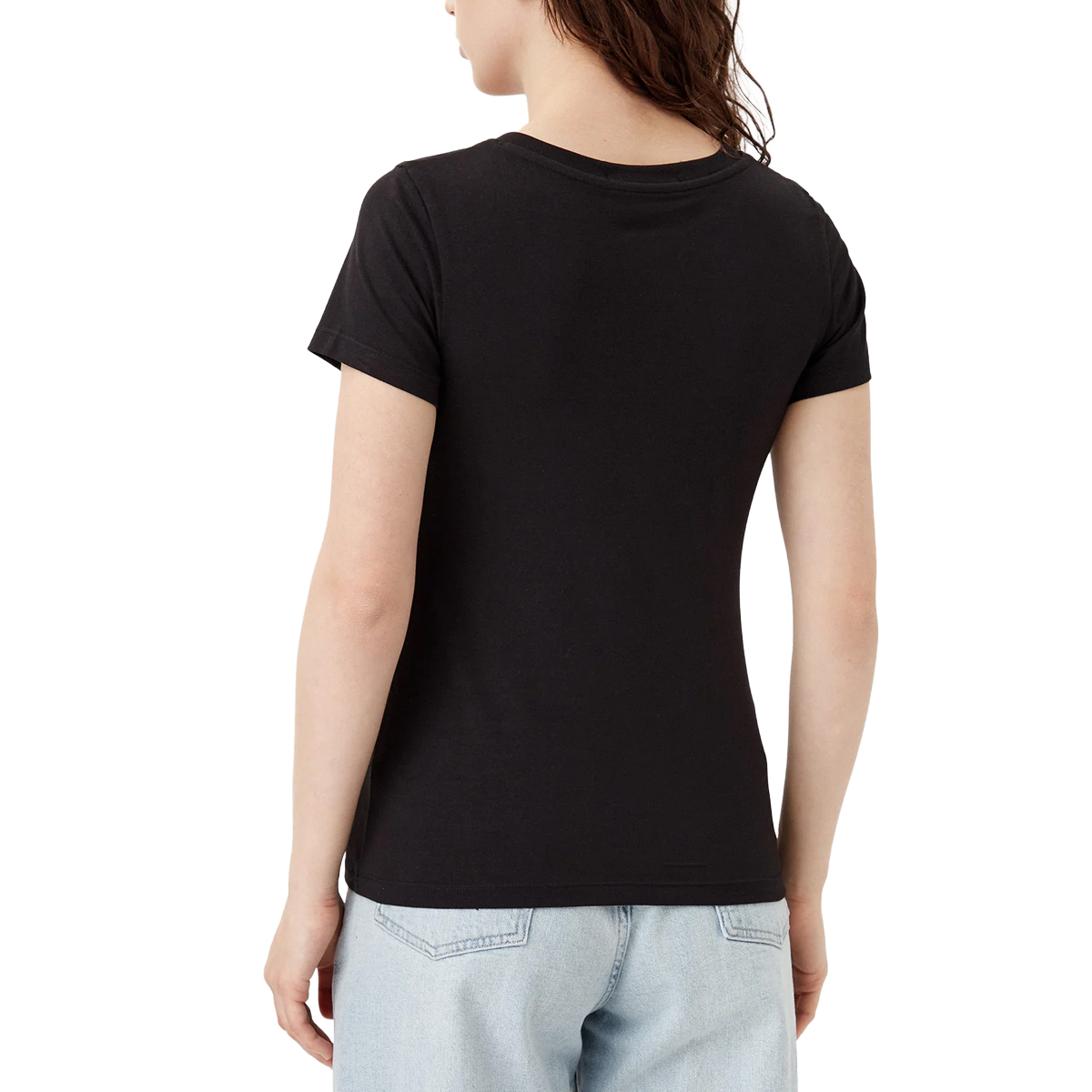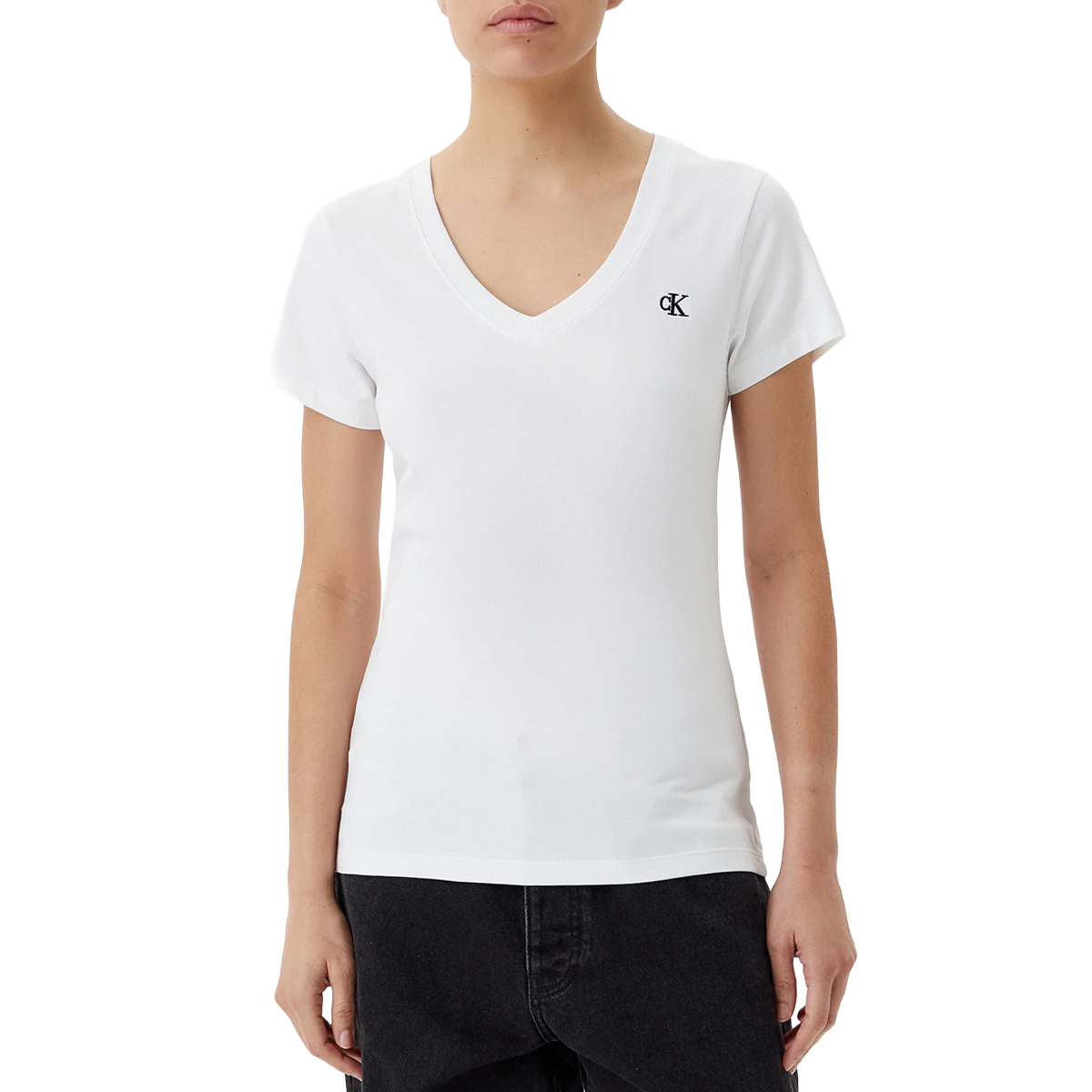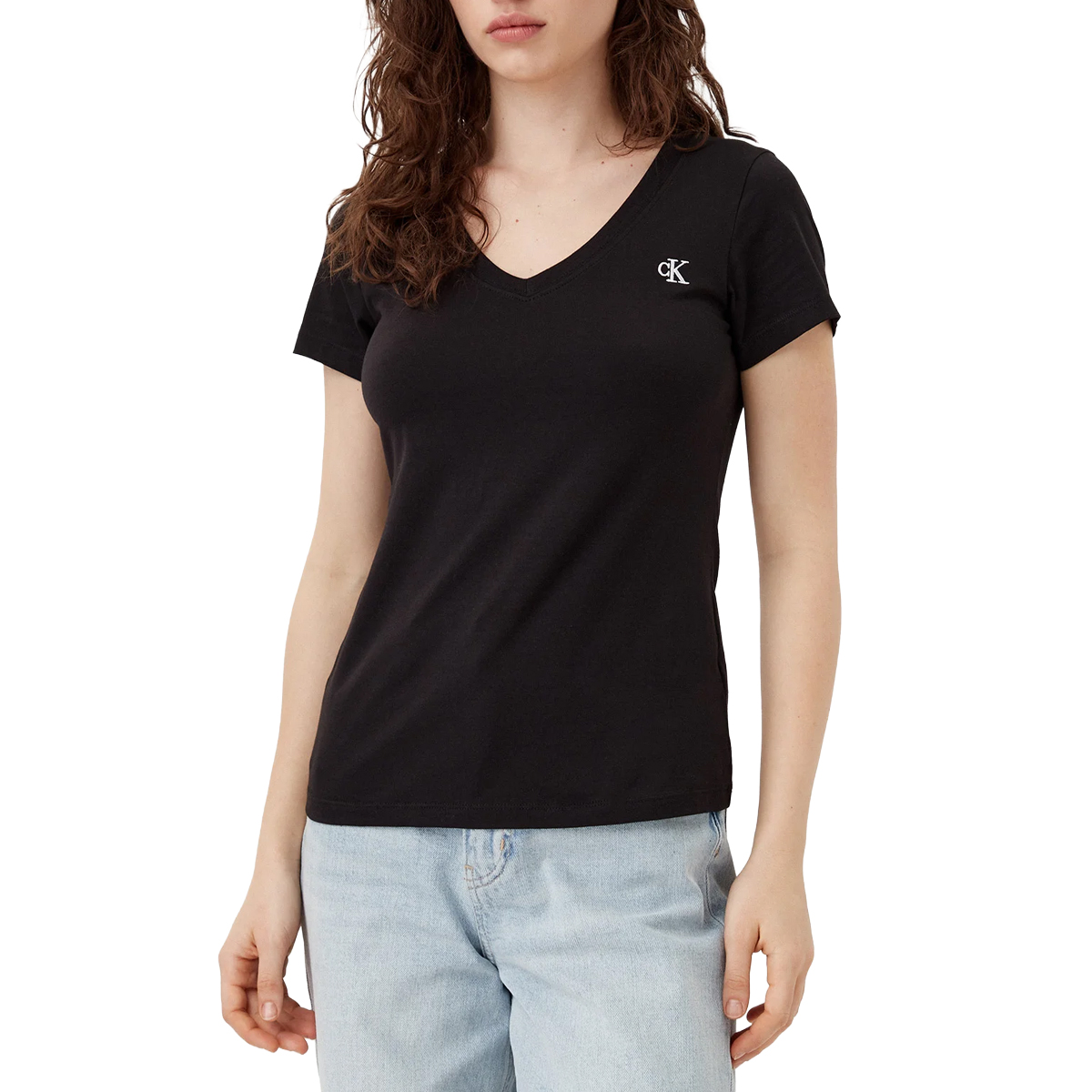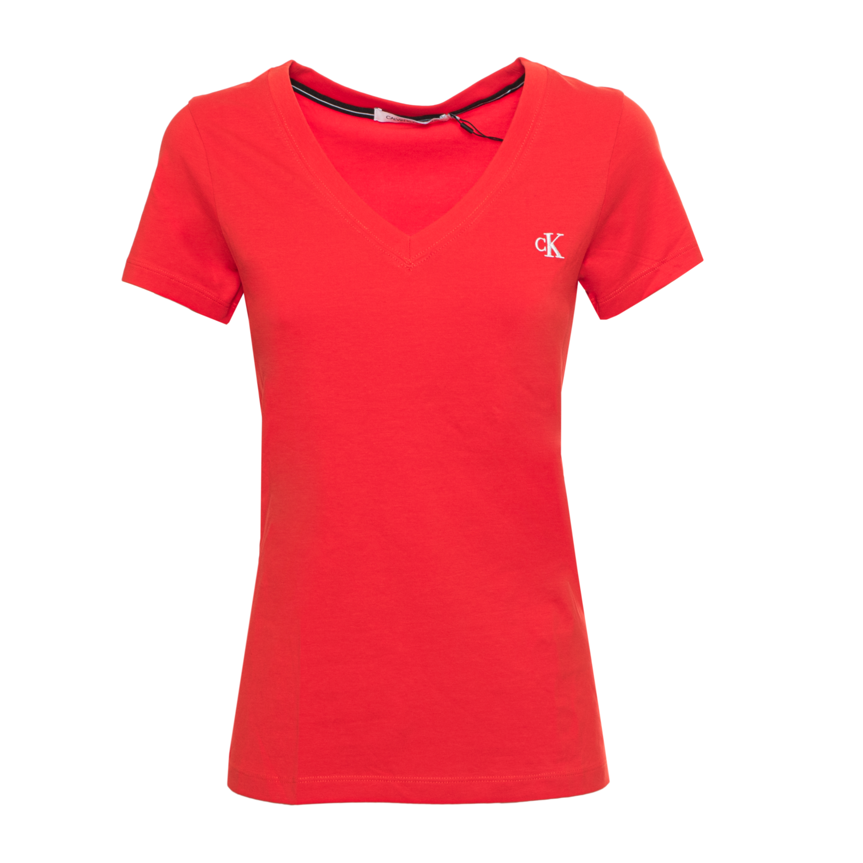 T-SHIRT, FOR WOMEN, V- NECK, SHORT SLEEVES, SOLID COLOUR, EMBROIDERED LOGO