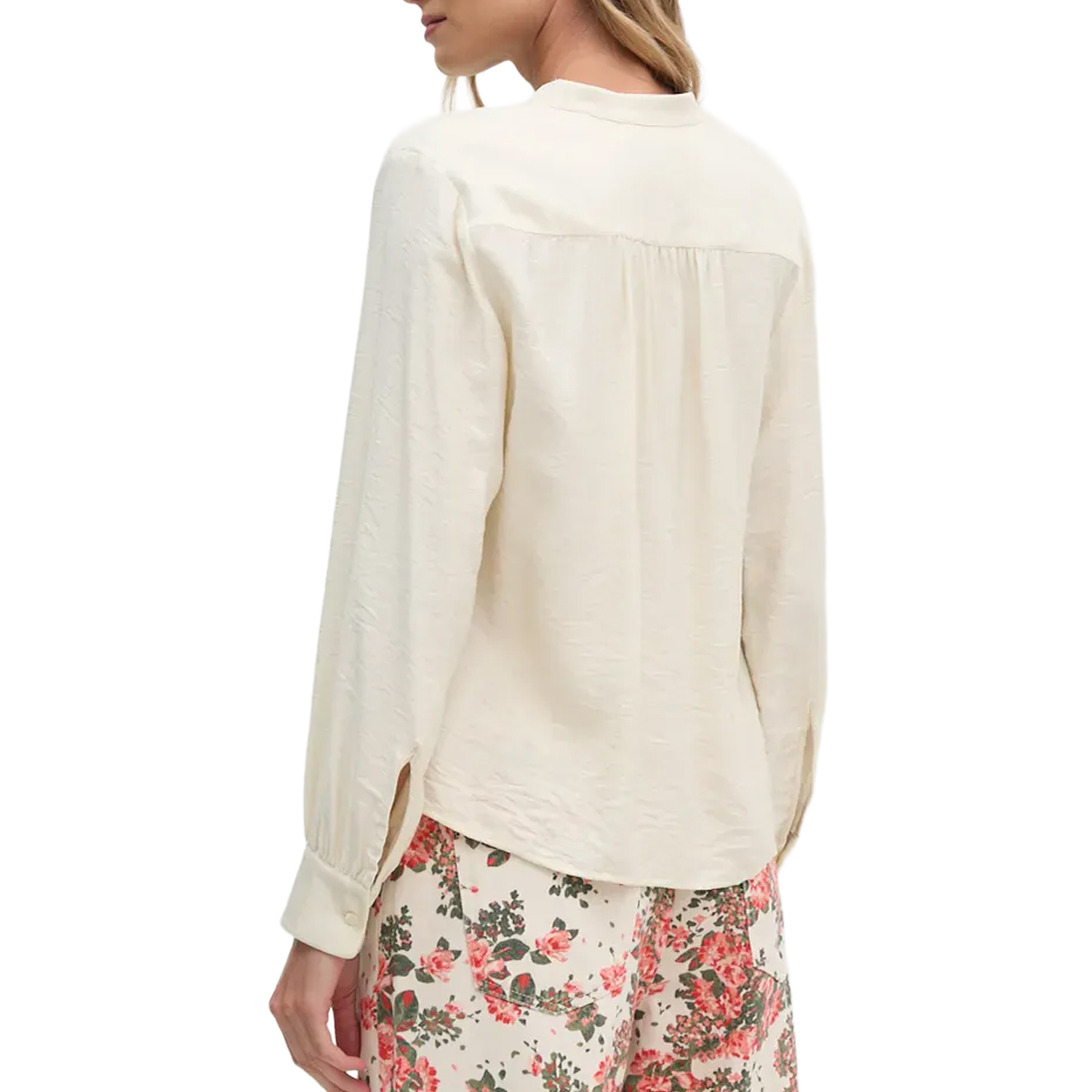 SHIRT, FOR WOMEN, MANDARIN COLLAR, LONG SLEEVES, SOLID COLOUR, WITH LOGO