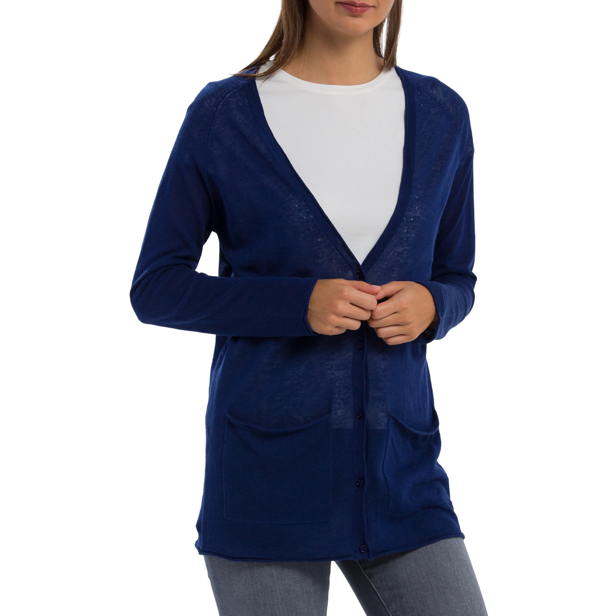 CARDIGAN, FOR WOMEN, V-NECK, LONG SLEEVES, SOLID COLOUR, WITH LOGO