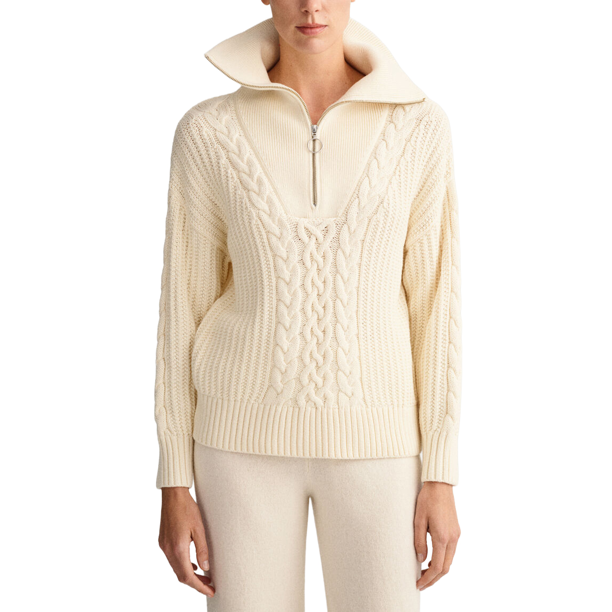 KNITWEAR, FOR WOMEN, TURTLE NECK, LONG SLEEVES, SOLID COLOUR, WITH LOGO, HALF ZIP
