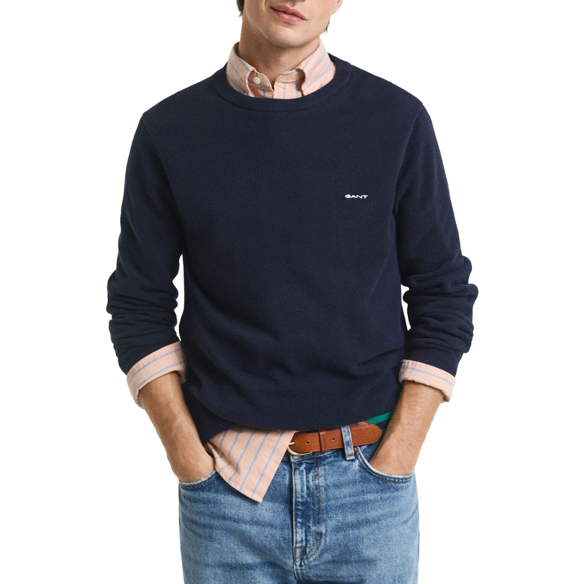 KNITWEAR, FOR MEN, ROUND NECK, LONG SLEEVES, SOLID COLOUR, EMBROIDERED LOGO