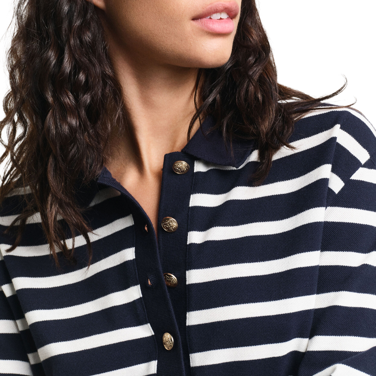 POLO SHIRT, FOR WOMEN, LONG SLEEVES, STRIPES, BI-COLOR, EMBROIDERED LOGO, WITH BUTTONS