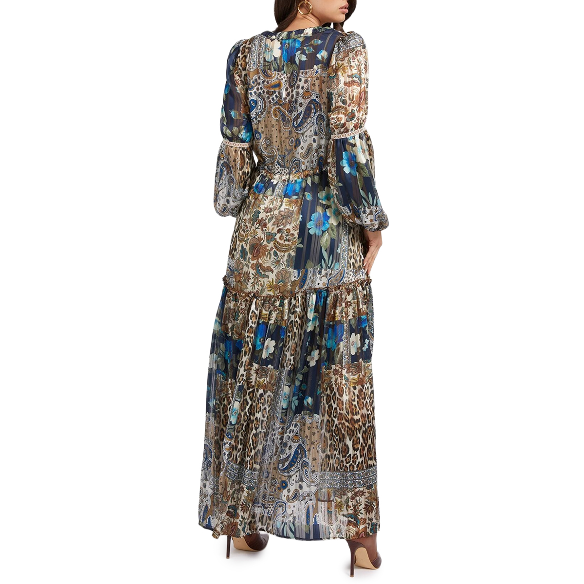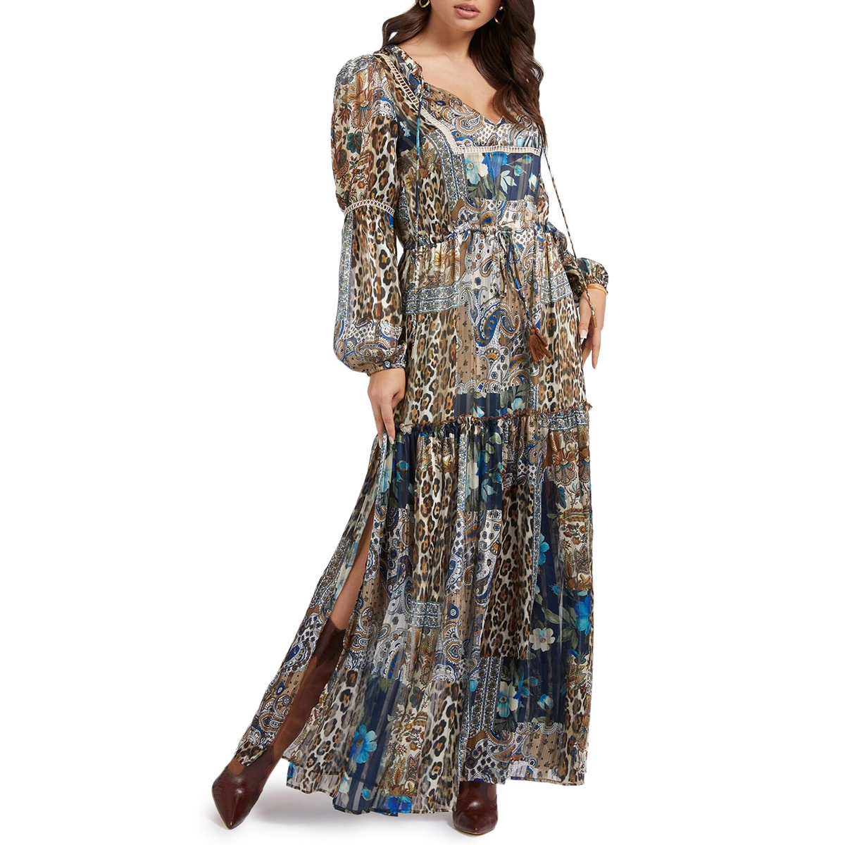 LONG DRESS, FOR WOMEN, LONG SLEEVES, FLORAL PATTERN, DRAWSTRING WAIST, WITH LOGO