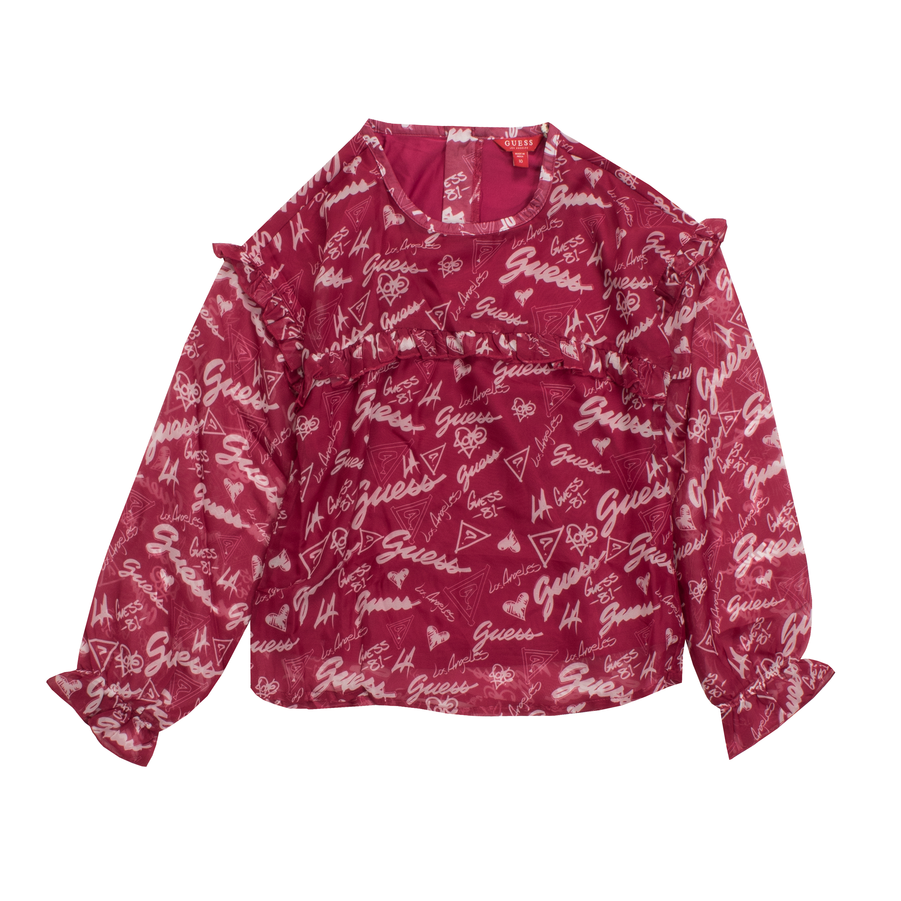 BLOUSE, FOR GIRLS, ROUNDNECK, LONG SLEEVES, PATTERNED, BI-COLOR, PRINTED LOGO, ZIP CLOSURE