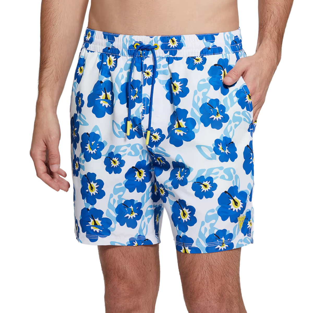 SWIMSUIT, FOR MEN, FLORAL PATTERN, MULTICOLOR, DRAWSTRING WAIST, WITH LOGO