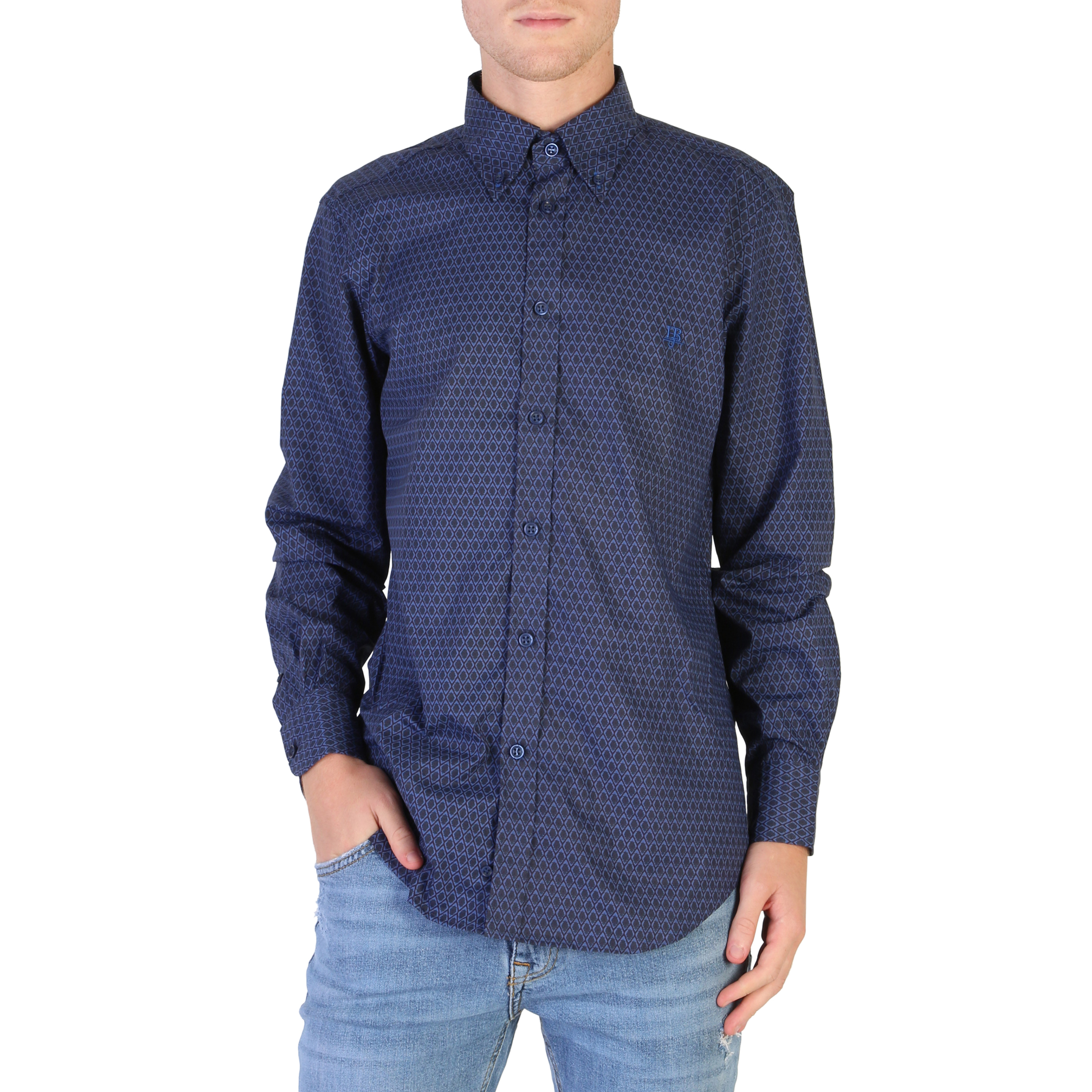 SHIRT, FOR MEN, BASIC COLLAR, LONG SLEEVES, PATTERNED, EMBROIDERED LOGO, BUTTONS CLOSURE