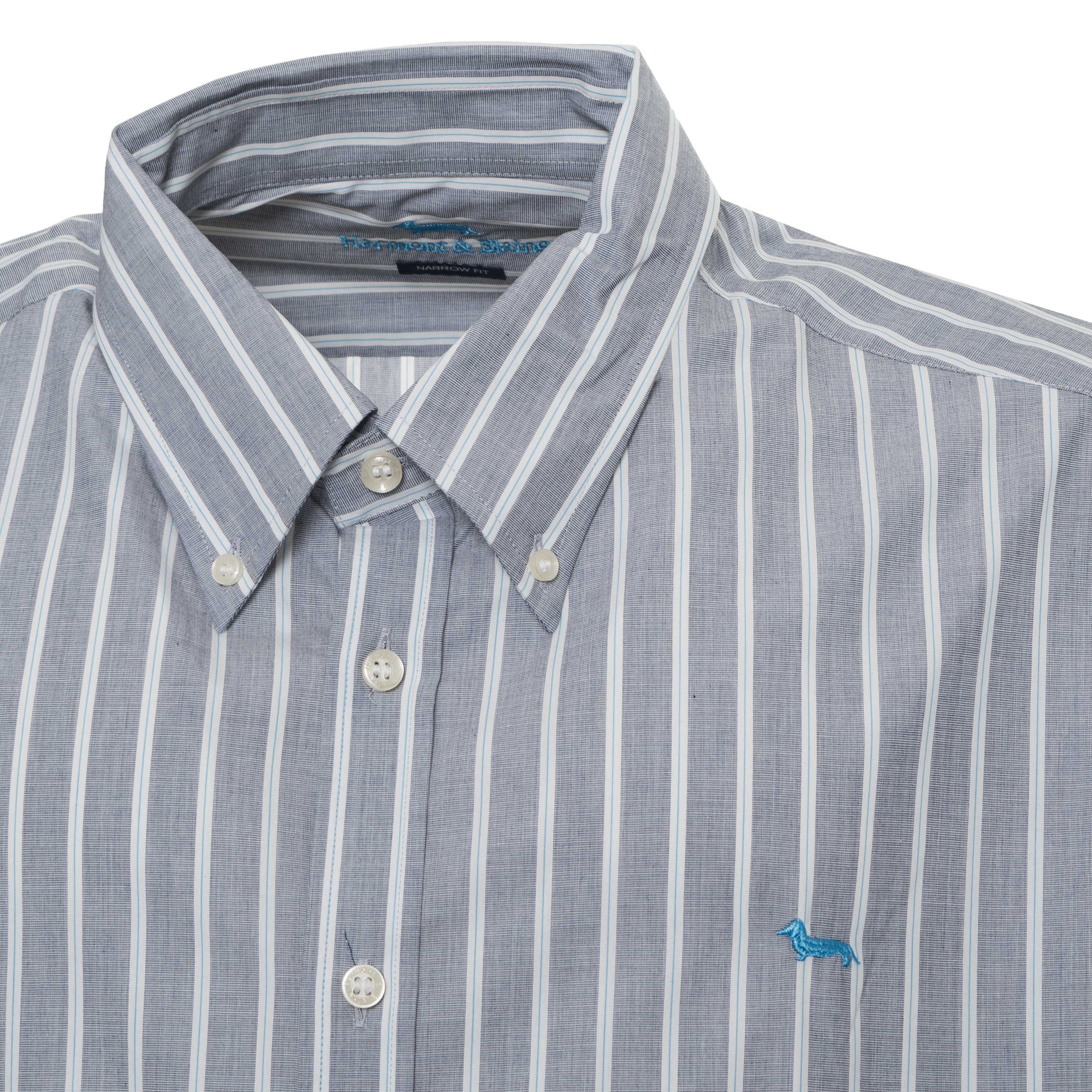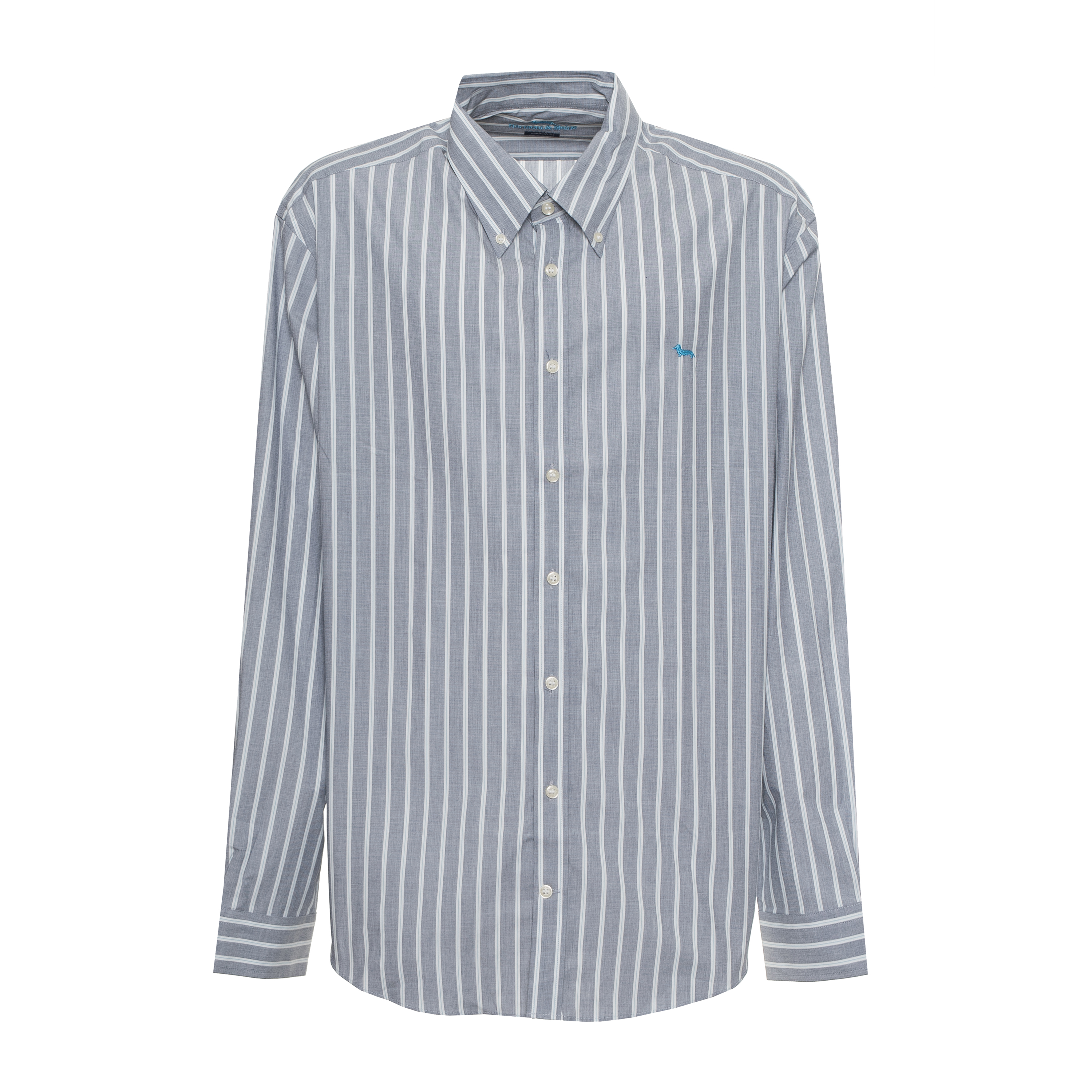 STRIPED SHIRT, FOR MEN, BUTTON DOWN, LONG SLEEVES, BI-COLOR, EMBROIDERED LOGO, BUTTONS CLOSURE