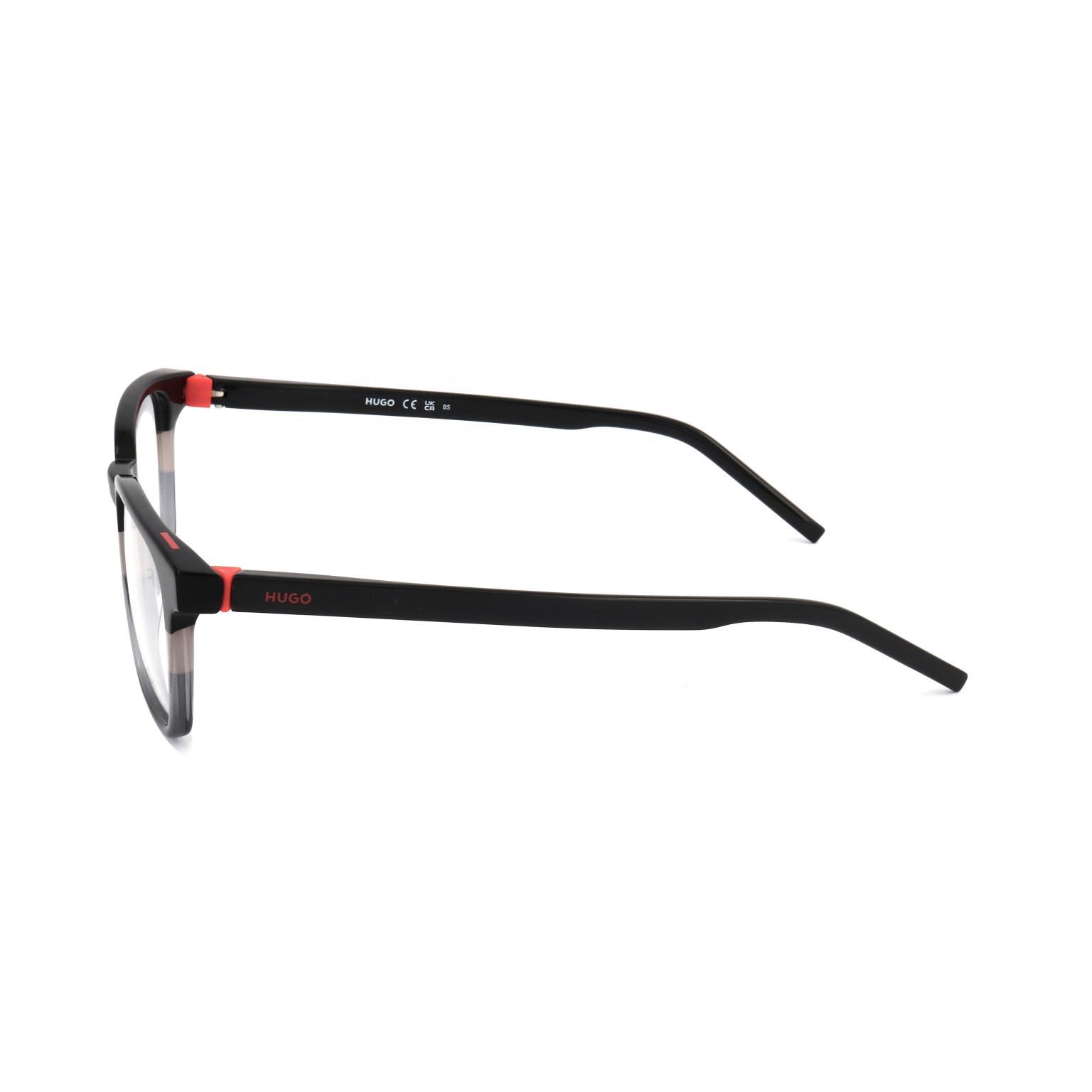 Ti occhiali znamke HUGO se ponašajo s pravokotnim okvirjem in mehkimi linijami, ki ustvarjajo urejen vizualni vtis. Zasnova poudarja vitke ročke in stabilen mostiček širine 17 mm, kar omogoča brezhibno prilagajanje obrazu. Z lencami premera 52 mm ti očali nudijo široko polje vida znotraj lahke, a trdne konstrukcije, ki je primerna za vsakodnevno uporabo.