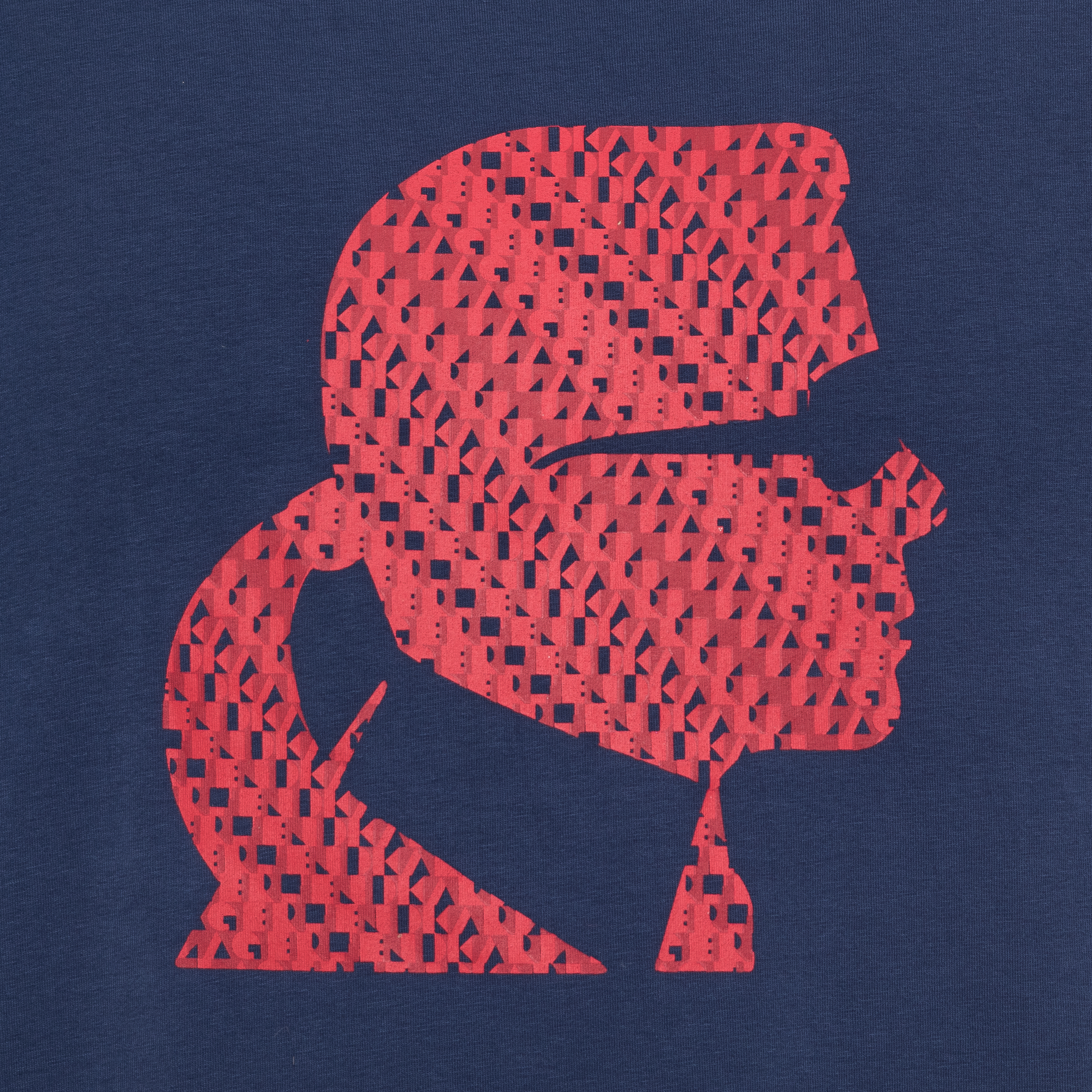 Majica blagovne znamke KARL LAGERFELD izstopa z velikim grafičnim motivom profila na sprednji strani. Izdelek odlikuje klasičen kroj s kratkimi rokavi in ojačanim okroglim ovratnikom, kar zagotavlja brezhibno prileganje in dolgotrajno ohranjanje oblike.
