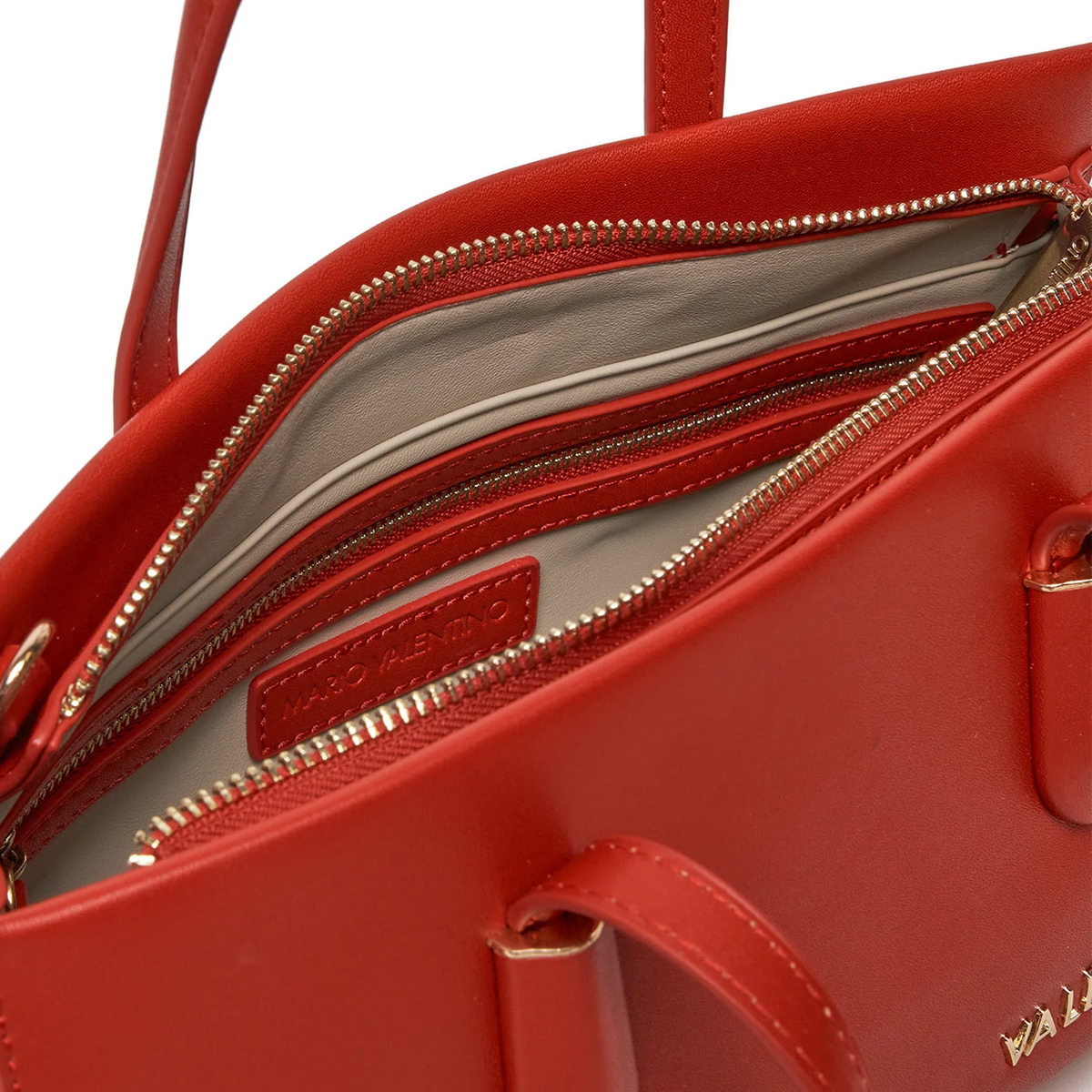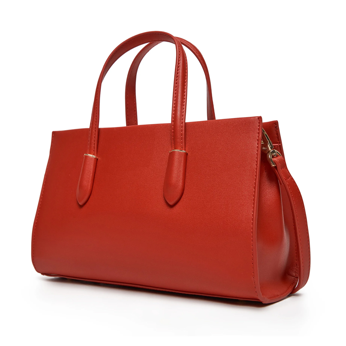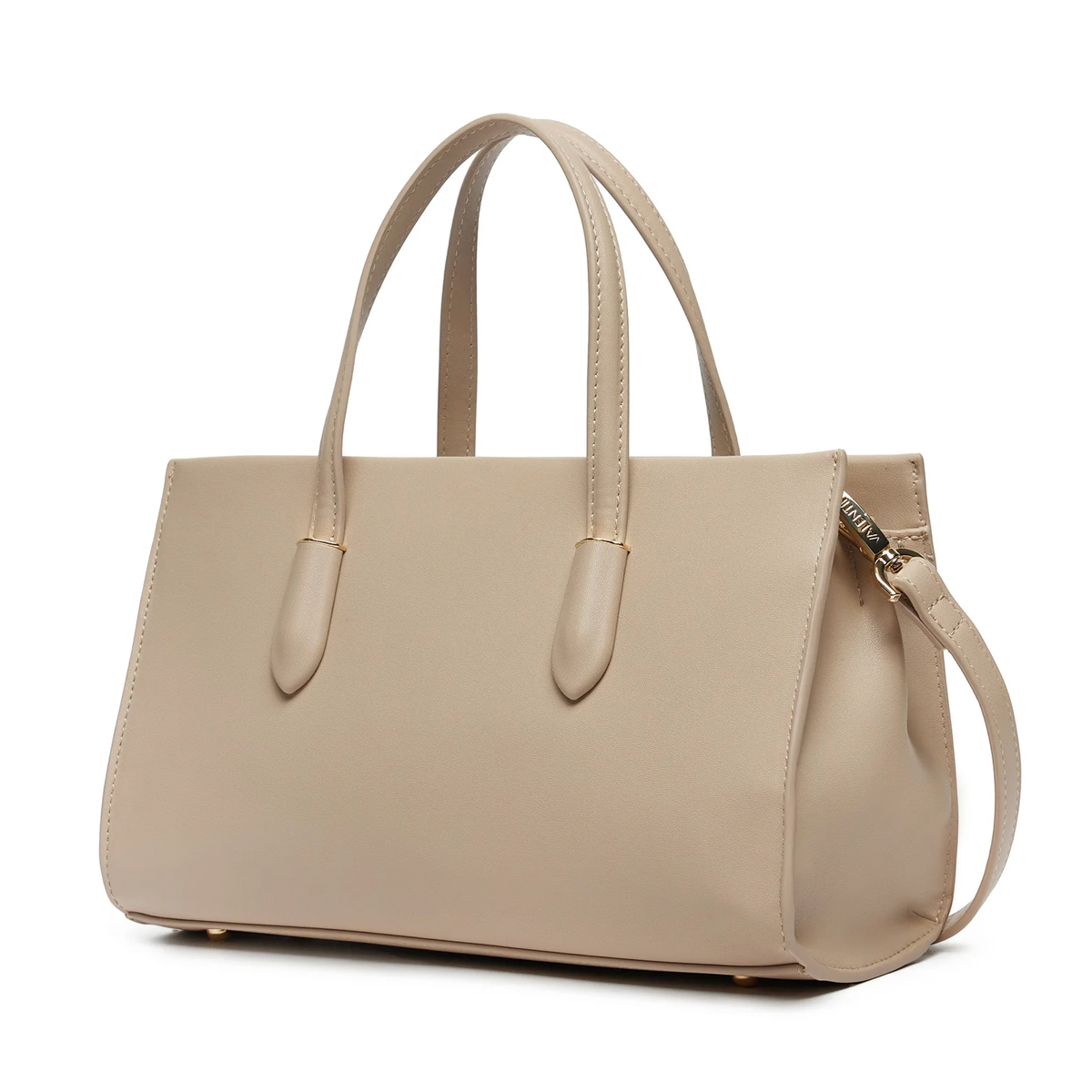 HANDBAG, FOR WOMEN, DOUBLE HANDLE, SOLID COLOUR, WITH LOGO, ZIP CLOSURE