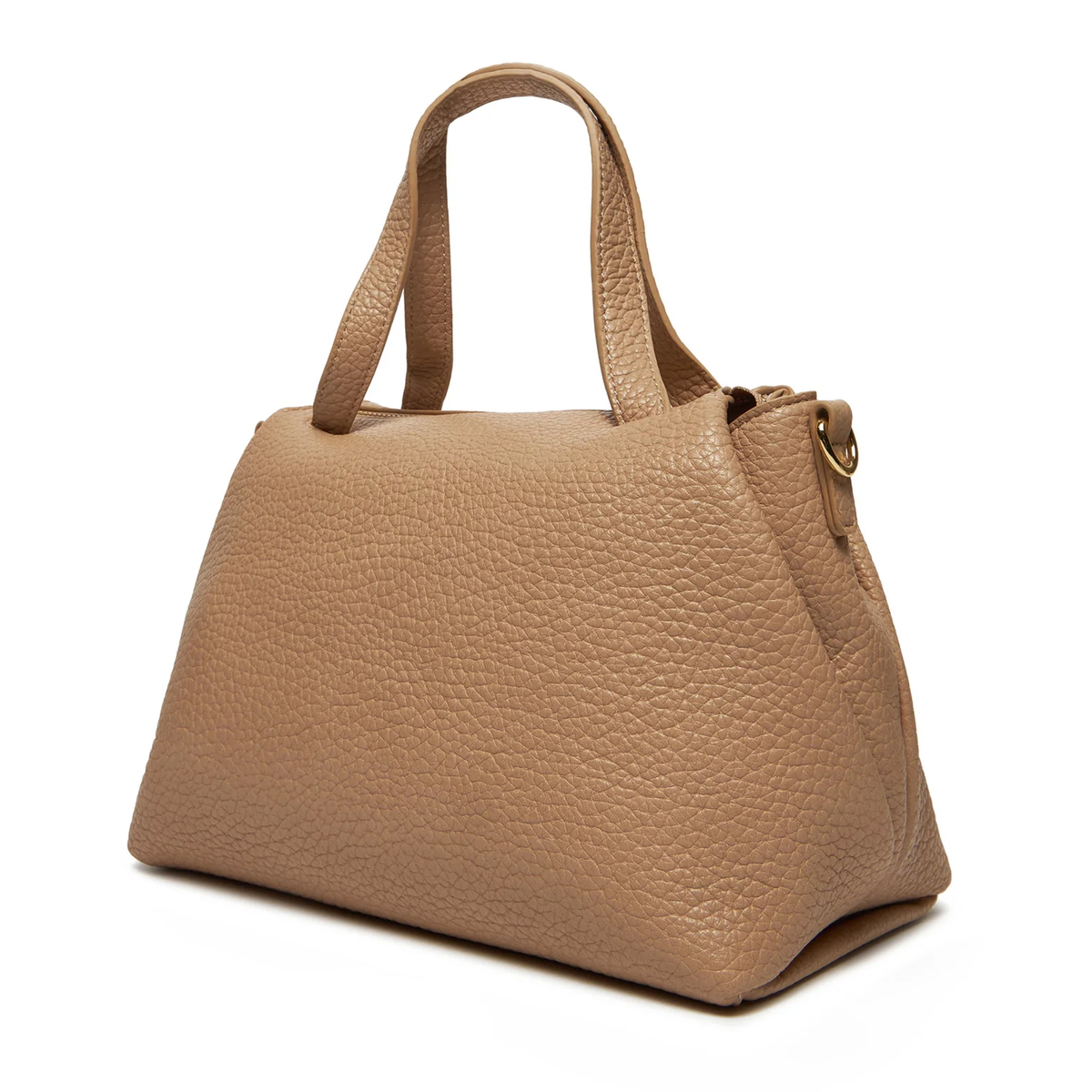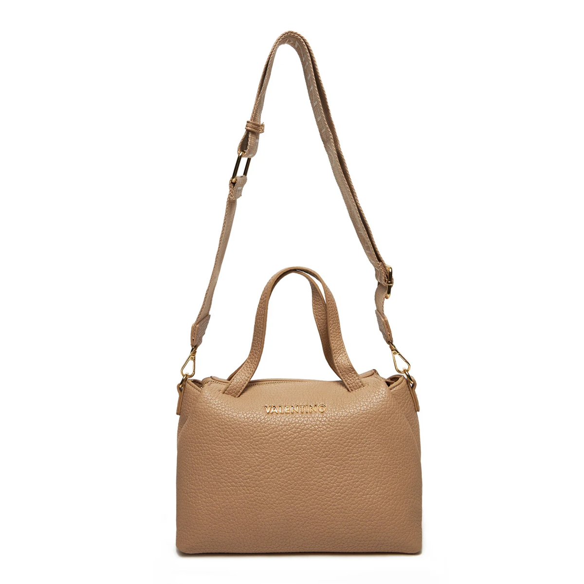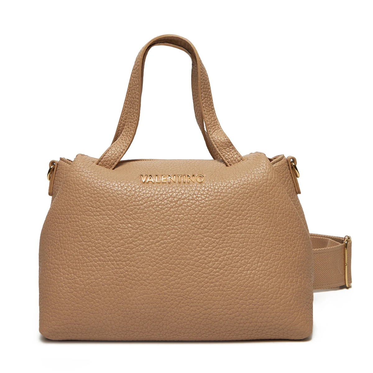 HANDBAG, FOR WOMEN, DOUBLE HANDLE, SOLID COLOUR, WITH LOGO, ZIP CLOSURE