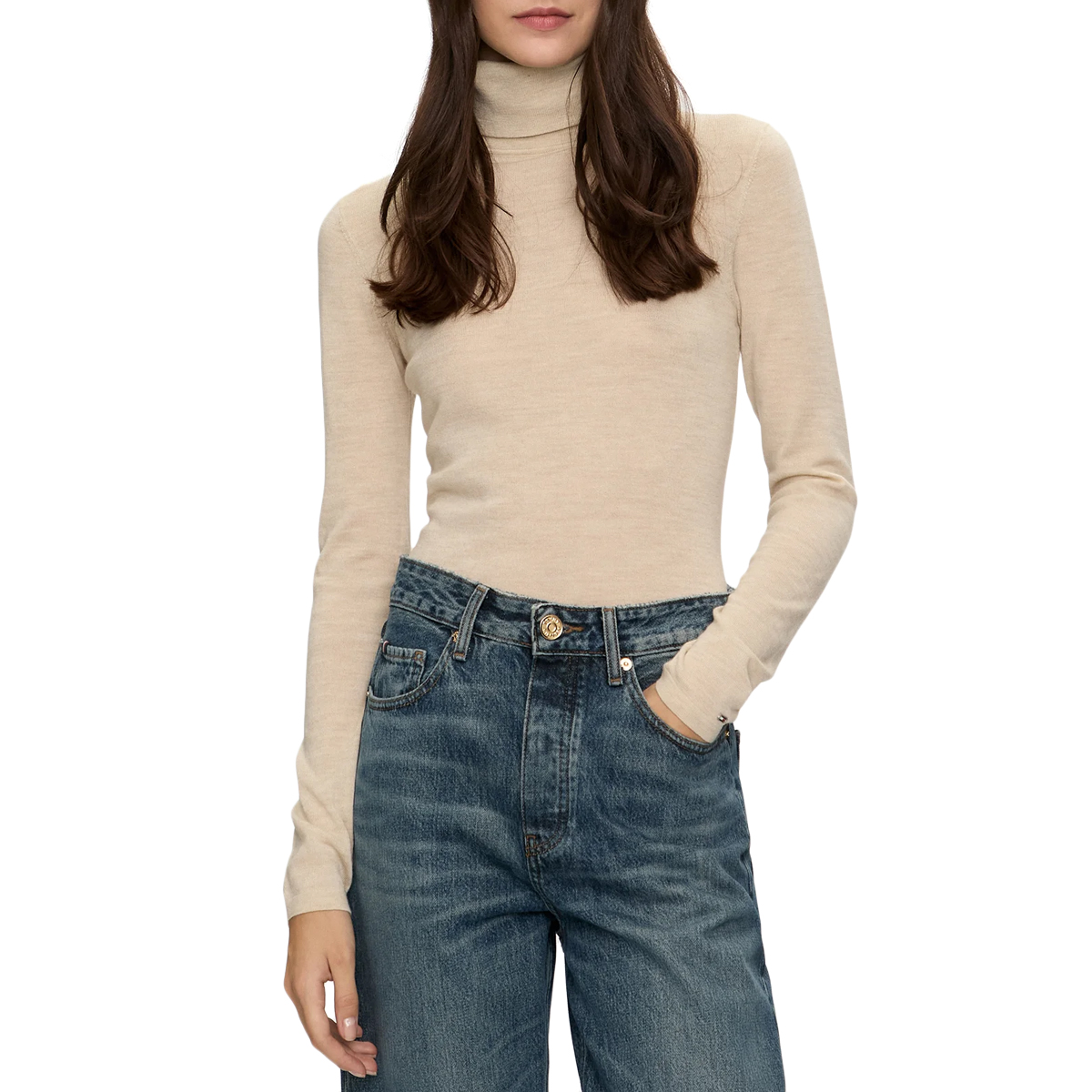 KNITWEAR, FOR WOMEN, TURTLE NECK, LONG SLEEVES, SOLID COLOUR, WITH LOGO