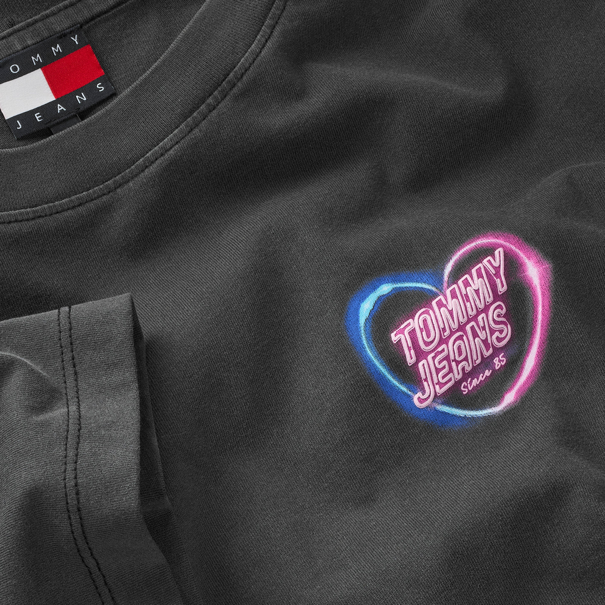 Ta T-SHIRT TJW RLX NEON SS TEE, BDS znamke TOMMY JEANS je majica sproščenega kroja, ki jo odlikujejo spuščena ramena in klasičen okrogel ovratnik. Njen dizajn temelji na preprosti prefinjenosti, kjer majhen neonski logotip v obliki srca na prsih služi kot sodoben poudarek. Ravne linije in premišljeni proporci ustvarjajo silhueto, ki je hkrati udobna in vizualno privlačna za različne prodajne koncepte.