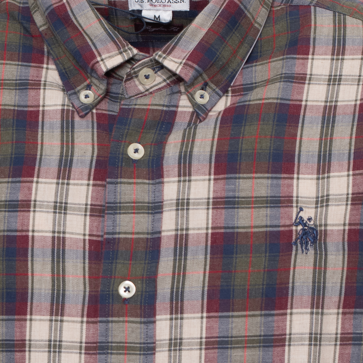 CHECKED SHIRT, FOR MEN, BUTTON DOWN, REGULAR FIT, LONG SLEEVES, MULTICOLOR, WITH LOGO, BUTTON CLOSURE